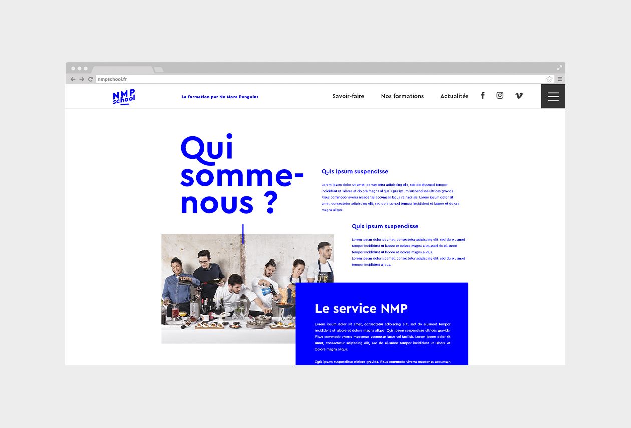Création de l'identité de NMP School, organisme de formation dédié au CHR.Une identité qui transpire la jeunesse et le dynamisme.